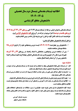 اطلاعیه ثبت نام مقدماتی نیمسال دوم 1404-1405