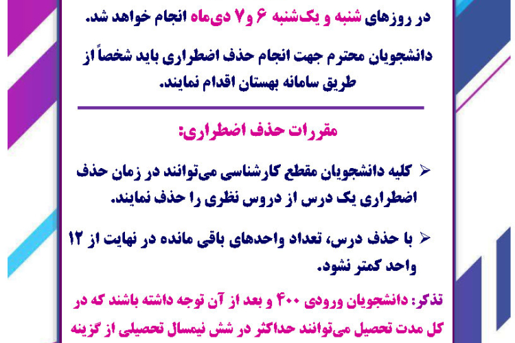 اطلاعیه حذف اضطراری فوق العاده نیمسال دوم سال 1400-1401