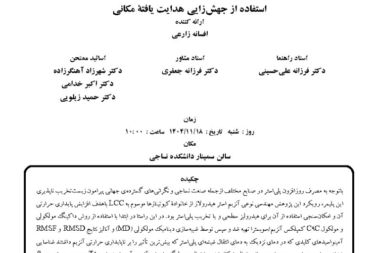 اطلاعیه دفاع از پایان نامه کارشناسی ارشد- خانم زهرا خوشنواز